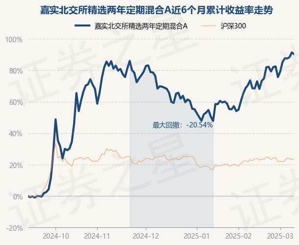 证券之星消息,3月11日,嘉实北交所精选两年定期混合A最新单位净值为0.9383元,累计净值为0.9383元,较前一交易日下跌0.58%。历史数据显示该基金近1个月上涨11.62%,近3个月上涨12.2%,近6个月上涨90.25%,近1年上涨49.22%。该基金近6个月的累计收益率走势如下图: