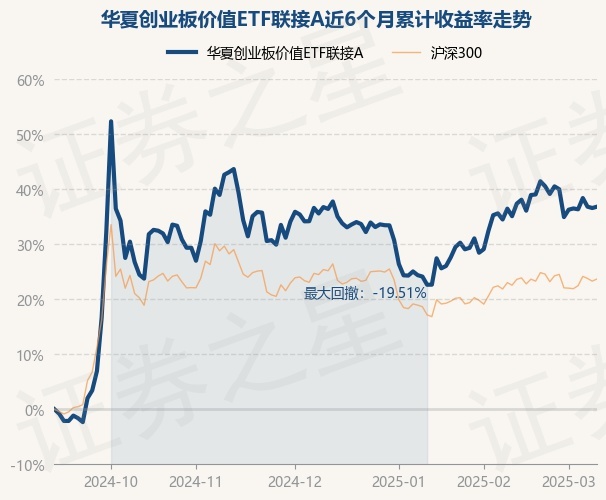 证券之星消息,3月11日,华夏创业板价值ETF联接A最新单位净值为1.4191元,累计净值为1.4191元,较前一交易日上涨0.18%。历史数据显示该基金近1个月上涨1.73%,近3个月上涨0.3%,近6个月上涨36.83%,近1年上涨17.39%。该基金近6个月的累计收益率走势如下图: