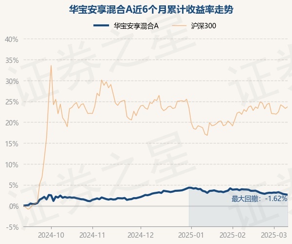 证券之星消息,3月11日,华宝安享混合A最新单位净值为1.1309元,累计净值为1.1309元,较前一交易日下跌0.08%。历史数据显示该基金近1个月下跌1.26%,近3个月下跌0.45%,近6个月上涨2.63%,近1年上涨2.48%。该基金近6个月的累计收益率走势如下图: