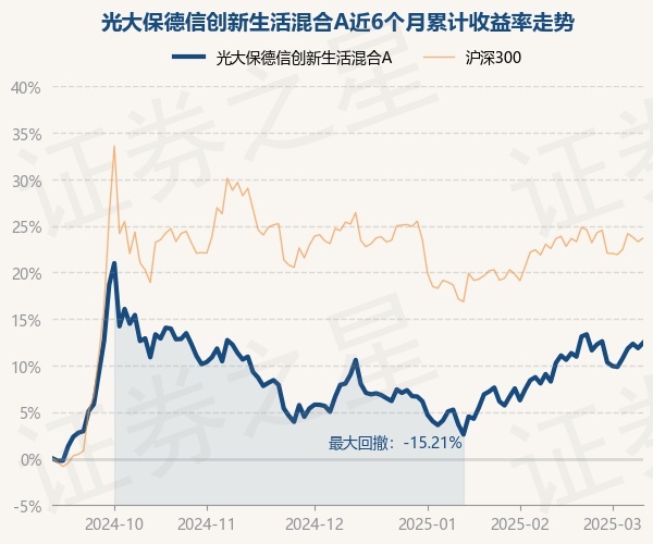 证券之星消息,3月11日,光大保德信创新生活混合A最新单位净值为0.7086元,累计净值为0.7086元,较前一交易日上涨0.51%。历史数据显示该基金近1个月上涨4.04%,近3个月上涨3.11%,近6个月上涨12.44%,近1年上涨4.84%。该基金近6个月的累计收益率走势如下图: