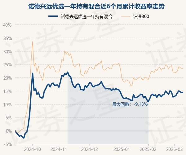 证券之星消息,3月11日,诺德兴远优选一年持有混合最新单位净值为0.7696元,累计净值为0.7696元,较前一交易日上涨0.14%。历史数据显示该基金近1个月上涨1.14%,近3个月下跌2.69%,近6个月上涨14.51%,近1年上涨5.29%。该基金近6个月的累计收益率走势如下图: