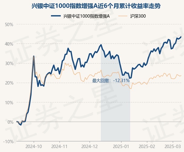 证券之星消息,3月11日,兴银中证1000指数增强A最新单位净值为0.9599元,累计净值为0.9599元,较前一交易日上涨0.51%。历史数据显示该基金近1个月上涨5.72%,近3个月上涨3.69%,近6个月上涨43.55%,近1年上涨23.16%。该基金近6个月的累计收益率走势如下图: