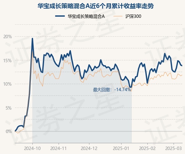 证券之星消息,3月11日,华宝成长策略混合A最新单位净值为1.5159元,累计净值为1.5159元,较前一交易日下跌0.2%。历史数据显示该基金近1个月上涨1.94%,近3个月下跌0.01%,近6个月上涨27.6%,近1年上涨16.79%。该基金近6个月的累计收益率走势如下图:
