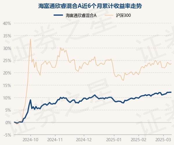 证券之星消息,3月11日,海富通欣睿混合A最新单位净值为1.2435元,累计净值为1.2435元,较前一交易日上涨0.0%。历史数据显示该基金近1个月上涨1.28%,近3个月上涨1.44%,近6个月上涨12.16%,近1年上涨9.79%。该基金近6个月的累计收益率走势如下图: