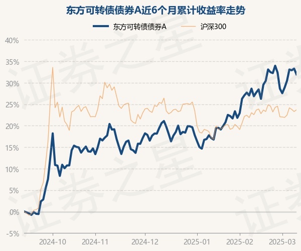 证券之星消息,3月11日,东方可转债债券A最新单位净值为1.0619元,累计净值为1.1069元,较前一交易日下跌1.0%。历史数据显示该基金近1个月上涨3.87%,近3个月上涨9.42%,近6个月上涨31.96%,近1年上涨17.47%。该基金近6个月的累计收益率走势如下图: