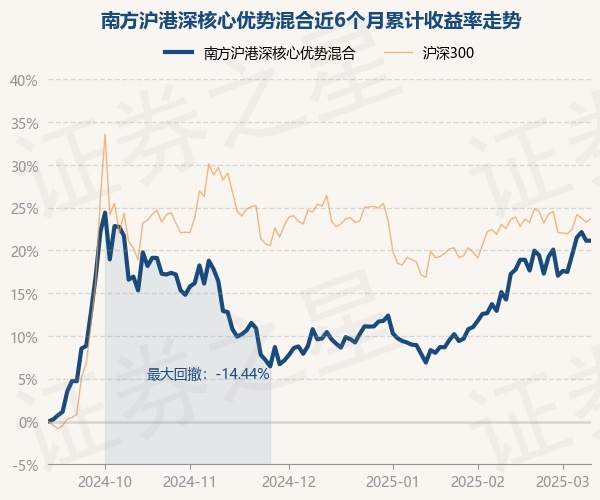 证券之星消息,3月11日,南方沪港深核心优势混合最新单位净值为0.683元,累计净值为0.683元,较前一交易日上涨0.0%。历史数据显示该基金近1个月上涨7.14%,近3个月上涨10.29%,近6个月上涨20.99%,近1年上涨18.06%。该基金近6个月的累计收益率走势如下图: