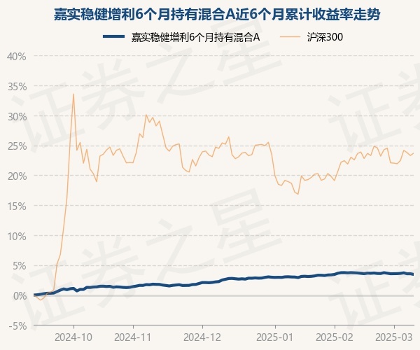 证券之星消息,3月11日,嘉实稳健增利6个月持有混合A最新单位净值为1.0494元,累计净值为1.0494元,较前一交易日下跌0.1%。历史数据显示该基金近1个月下跌0.25%,近3个月上涨0.8%,近6个月上涨3.45%,近1年上涨4.35%。该基金近6个月的累计收益率走势如下图: