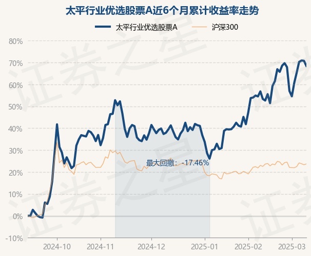 证券之星消息,3月11日,太平行业优选股票A最新单位净值为0.9828元,累计净值为1.0328元,较前一交易日下跌1.37%。历史数据显示该基金近1个月上涨9.02%,近3个月上涨20.75%,近6个月上涨68.43%,近1年上涨55.14%。该基金近6个月的累计收益率走势如下图: