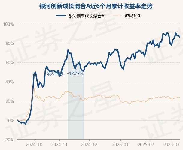 证券之星消息,3月11日,银河创新成长混合A最新单位净值为7.0189元,累计净值为7.0189元,较前一交易日下跌0.93%。历史数据显示该基金近1个月上涨4.13%,近3个月上涨16.92%,近6个月上涨85.98%,近1年上涨65.42%。该基金近6个月的累计收益率走势如下图: