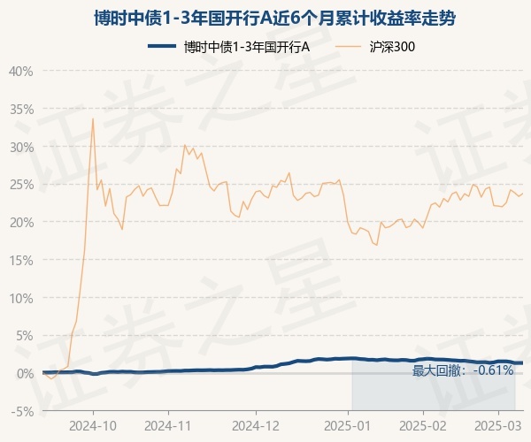 证券之星消息,3月11日,博时中债1-3年国开行A最新单位净值为1.0477元,累计净值为1.1779元,较前一交易日上涨0.0%。历史数据显示该基金近1个月下跌0.51%,近3个月上涨0.05%,近6个月上涨1.21%,近1年上涨2.98%。该基金近6个月的累计收益率走势如下图: