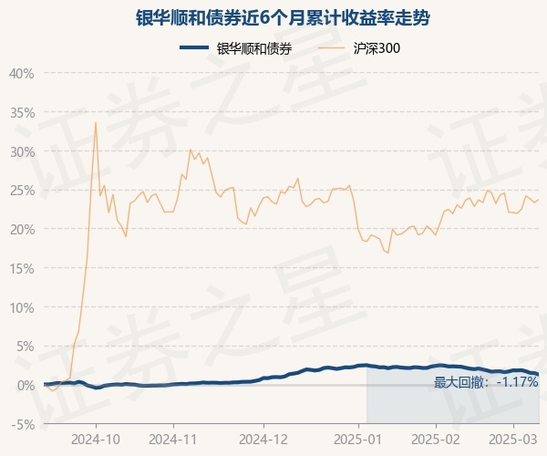 证券之星消息,3月11日,银华顺和债券最新单位净值为1.0396元,累计净值为1.0576元,较前一交易日下跌0.18%。历史数据显示该基金近1个月下跌1.03%,近3个月下跌0.12%,近6个月上涨1.27%,近1年上涨3.6%。该基金近6个月的累计收益率走势如下图: