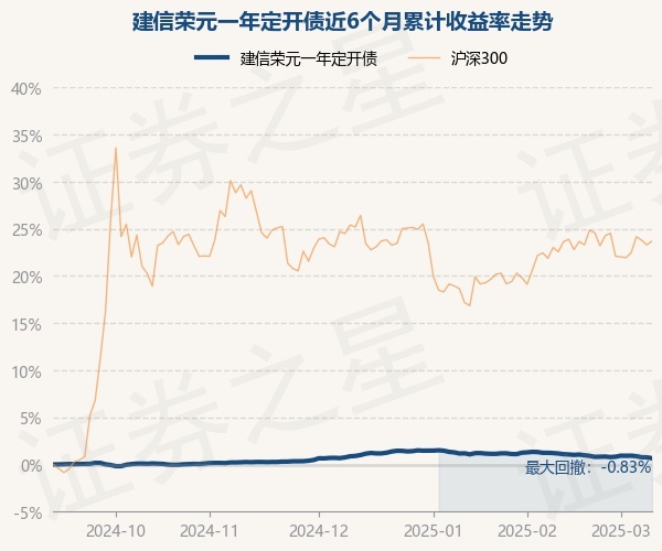 证券之星消息,3月11日,建信荣元一年定开债最新单位净值为1.0875元,累计净值为1.1325元,较前一交易日下跌0.09%。历史数据显示该基金近1个月下跌0.57%,近3个月下跌0.24%,近6个月上涨0.67%,近1年上涨2.54%。该基金近6个月的累计收益率走势如下图: