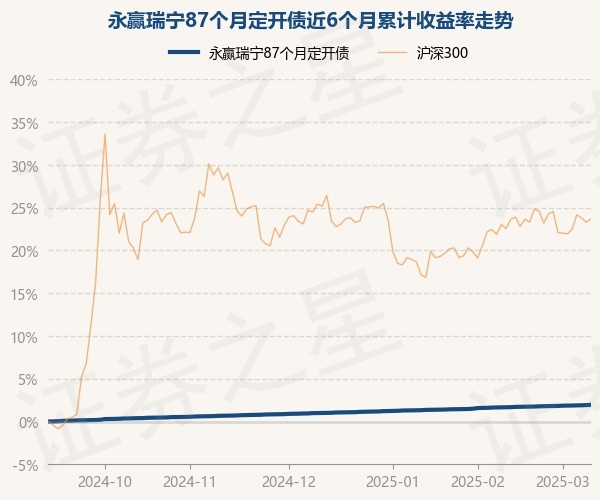 证券之星消息,3月11日,永赢瑞宁87个月定开债最新单位净值为1.1027元,累计净值为1.1847元,较前一交易日上涨0.02%。历史数据显示该基金近1个月上涨0.29%,近3个月上涨0.93%,近6个月上涨1.94%,近1年上涨3.95%。该基金近6个月的累计收益率走势如下图: