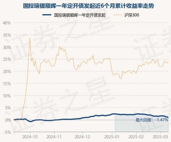 证券之星消息,3月11日,国投瑞银顺晖一年定开债发起最新单位净值为1.0554元,累计净值为1.0897元,较前一交易日下跌0.24%。历史数据显示该基金近1个月下跌1.36%,近3个月下跌0.41%,近6个月上涨0.91%,近1年上涨3.56%。该基金近6个月的累计收益率走势如下图: