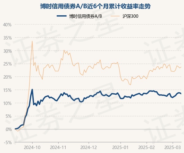 证券之星消息,3月11日,博时信用债券A/B最新单位净值为3.1462元,累计净值为3.2612元,较前一交易日下跌0.27%。历史数据显示该基金近1个月下跌0.82%,近3个月下跌0.38%,近6个月上涨13.47%,近1年上涨7.42%。该基金近6个月的累计收益率走势如下图: