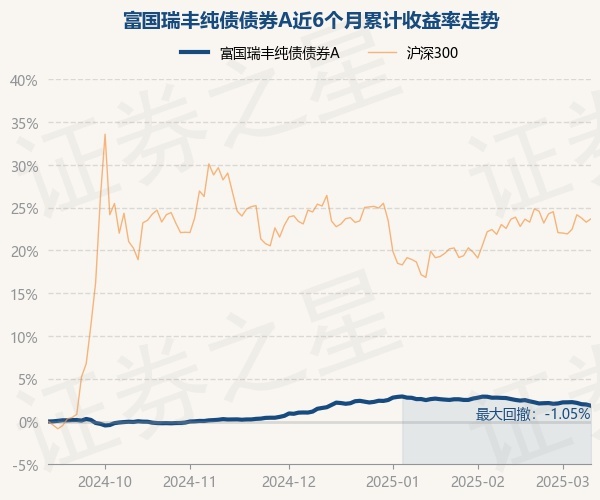 证券之星消息,3月11日,富国瑞丰纯债债券A最新单位净值为1.0622元,累计净值为1.0622元,较前一交易日下跌0.14%。历史数据显示该基金近1个月下跌0.92%,近3个月上涨0.25%,近6个月上涨1.84%,近1年上涨4.19%。该基金近6个月的累计收益率走势如下图: