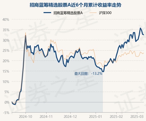 证券之星消息,3月11日,招商蓝筹精选股票A最新单位净值为0.712元,累计净值为0.712元,较前一交易日下跌0.14%。历史数据显示该基金近1个月上涨5.23%,近3个月上涨6.48%,近6个月上涨32.49%,近1年上涨24.26%。该基金近6个月的累计收益率走势如下图: