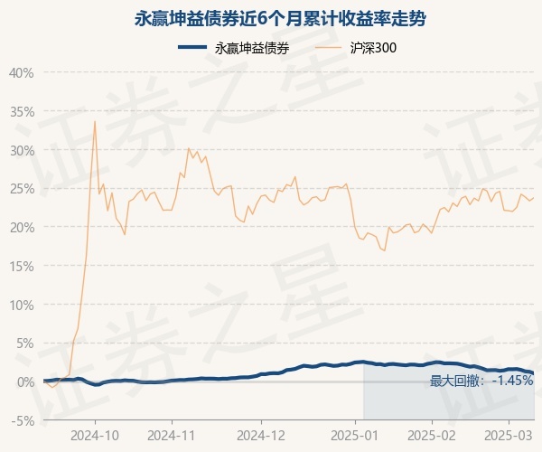 证券之星消息,3月11日,永赢坤益债券最新单位净值为1.0529元,累计净值为1.0799元,较前一交易日下跌0.2%。历史数据显示该基金近1个月下跌1.27%,近3个月下跌0.47%,近6个月上涨1.0%,近1年上涨3.3%。该基金近6个月的累计收益率走势如下图: