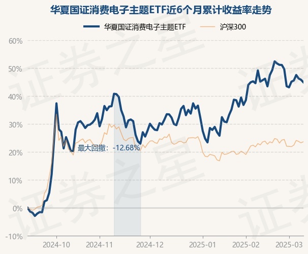 证券之星消息,3月11日,华夏国证消费电子主题ETF最新单位净值为0.8821元,累计净值为0.8821元,较前一交易日下跌0.62%。历史数据显示该基金近1个月上涨0.23%,近3个月上涨8.55%,近6个月上涨44.96%,近1年上涨38.61%。该基金近6个月的累计收益率走势如下图:
