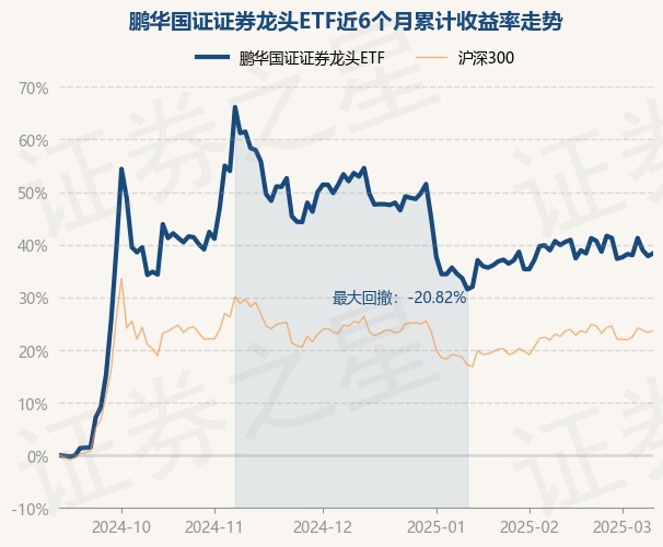 证券之星消息,3月11日,鹏华国证证券龙头ETF最新单位净值为1.1794元,累计净值为1.1794元,较前一交易日上涨0.37%。历史数据显示该基金近1个月下跌0.42%,近3个月下跌9.54%,近6个月上涨38.35%,近1年上涨23.74%。该基金近6个月的累计收益率走势如下图: