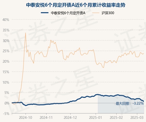 证券之星消息,3月11日,中泰安悦6个月定开债A最新单位净值为1.0168元,累计净值为1.0788元,较前一交易日下跌0.45%。历史数据显示该基金近1个月下跌2.82%,近3个月下跌1.14%,近6个月上涨0.67%,近1年上涨3.5%。该基金近6个月的累计收益率走势如下图: