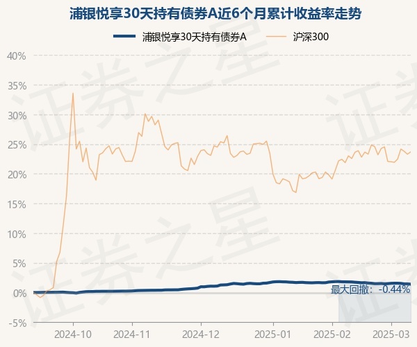 证券之星消息,3月11日,浦银悦享30天持有债券A最新单位净值为1.0408元,累计净值为1.0408元,较前一交易日下跌0.06%。历史数据显示该基金近1个月下跌0.39%,近3个月上涨0.12%,近6个月上涨1.4%,近1年上涨2.81%。该基金近6个月的累计收益率走势如下图: