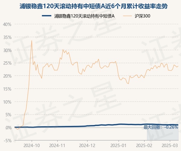 证券之星消息,3月11日,浦银稳鑫120天滚动持有中短债A最新单位净值为1.0918元,累计净值为1.0918元,较前一交易日下跌0.02%。历史数据显示该基金近1个月下跌0.23%,近3个月上涨0.2%,近6个月上涨0.95%,近1年上涨2.35%。该基金近6个月的累计收益率走势如下图: