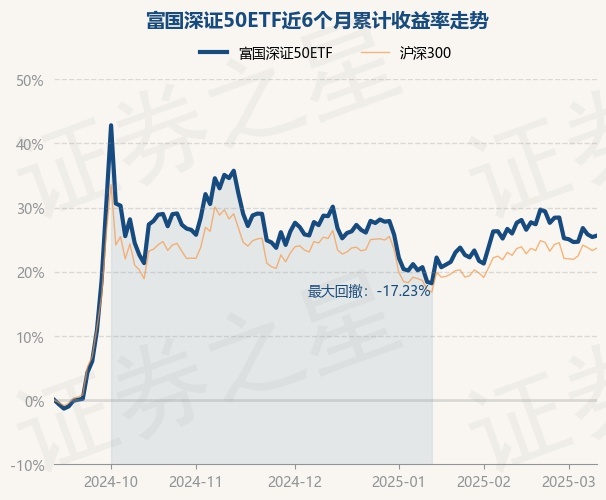 证券之星消息,3月11日,富国深证50ETF最新单位净值为1.1739元,累计净值为1.1739元,较前一交易日上涨0.17%。历史数据显示该基金近1个月上涨0.36%,近3个月下跌2.36%,近6个月上涨25.63%,近1年上涨12.44%。该基金近6个月的累计收益率走势如下图: