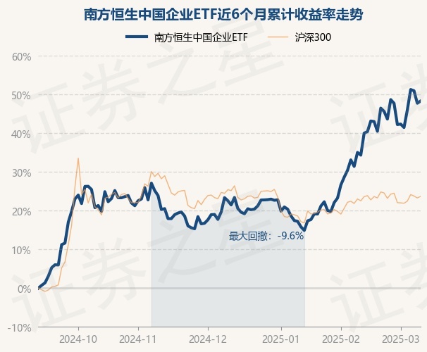 证券之星消息,3月11日,南方恒生中国企业ETF最新单位净值为1.0087元,累计净值为1.0087元,较前一交易日上涨0.4%。历史数据显示该基金近1个月上涨12.86%,近3个月上涨22.09%,近6个月上涨48.34%,近1年上涨64.82%。该基金近6个月的累计收益率走势如下图: