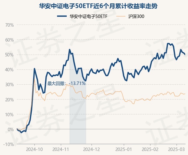 证券之星消息,3月11日,华安中证电子50ETF最新单位净值为0.8938元,累计净值为0.8938元,较前一交易日下跌0.7%。历史数据显示该基金近1个月上涨1.92%,近3个月上涨7.56%,近6个月上涨49.92%,近1年上涨34.47%。该基金近6个月的累计收益率走势如下图: