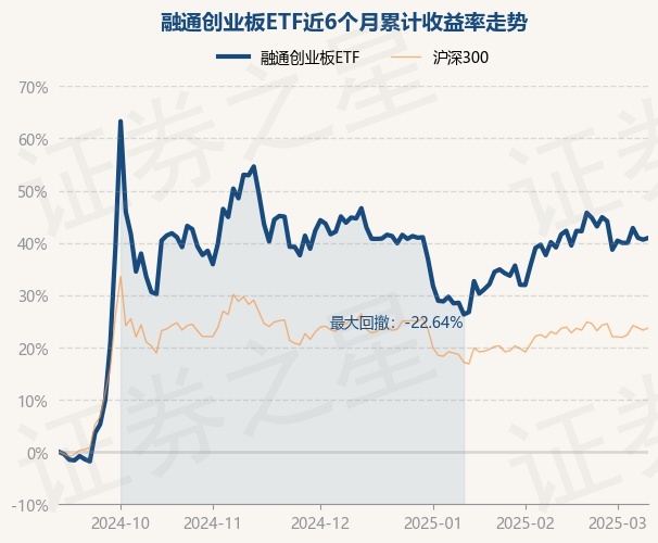 证券之星消息,3月11日,融通创业板ETF最新单位净值为0.8293元,累计净值为0.8293元,较前一交易日上涨0.23%。历史数据显示该基金近1个月上涨2.38%,近3个月下跌2.58%,近6个月上涨40.94%,近1年上涨17.15%。该基金近6个月的累计收益率走势如下图: