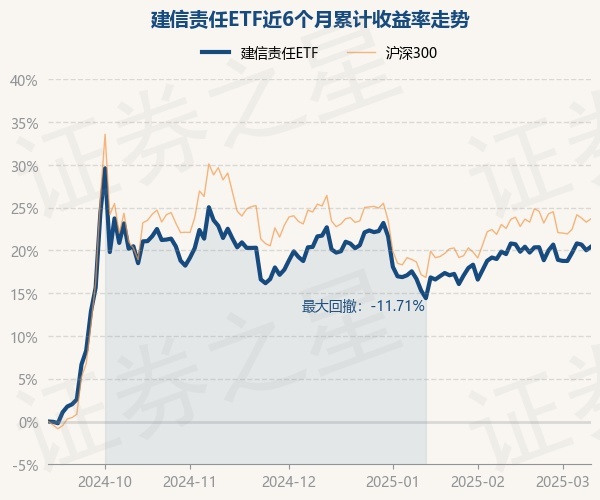 证券之星消息,3月11日,建信责任ETF最新单位净值为2.4876元,累计净值为2.9677元,较前一交易日上涨0.34%。历史数据显示该基金近1个月上涨1.21%,近3个月下跌1.07%,近6个月上涨20.43%,近1年上涨14.7%。该基金近6个月的累计收益率走势如下图: