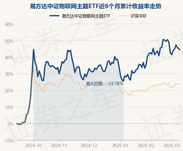 证券之星消息,3月11日,易方达中证物联网主题ETF最新单位净值为0.9277元,累计净值为0.9277元,较前一交易日下跌0.47%。历史数据显示该基金近1个月上涨1.78%,近3个月上涨6.85%,近6个月上涨44.41%,近1年上涨24.49%。该基金近6个月的累计收益率走势如下图: