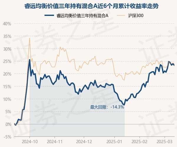证券之星消息,3月12日,睿远均衡价值三年持有混合A最新单位净值为1.4139元,累计净值为1.4139元,较前一交易日下跌0.51%。历史数据显示该基金近1个月上涨5.72%,近3个月上涨5.11%,近6个月上涨23.33%,近1年上涨22.13%。该基金近6个月的累计收益率走势如下图: