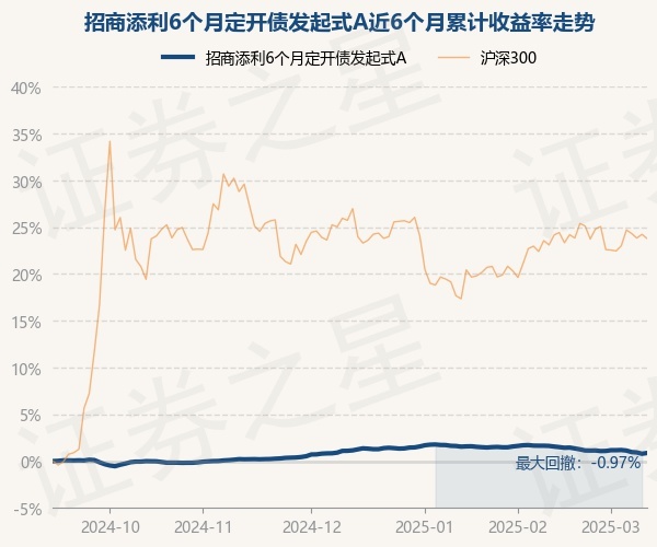 证券之星消息,3月12日,招商添利6个月定开债发起式A最新单位净值为1.011元,累计净值为1.2826元,较前一交易日上涨0.08%。历史数据显示该基金近1个月下跌0.77%,近3个月下跌0.28%,近6个月上涨0.87%,近1年上涨7.44%。该基金近6个月的累计收益率走势如下图: