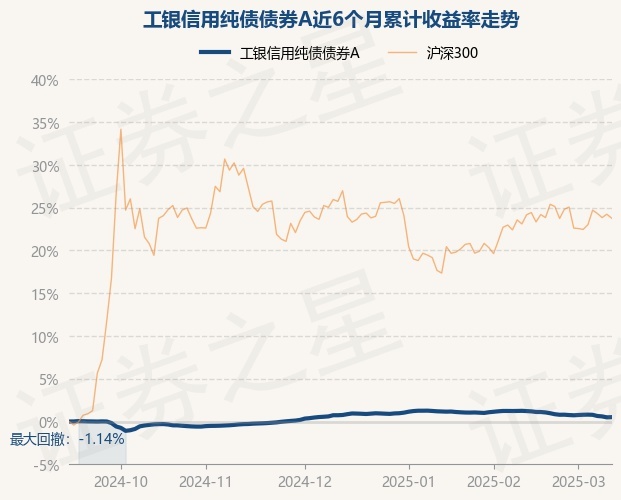 证券之星消息,3月12日,工银信用纯债债券A最新单位净值为1.467元,累计净值为1.508元,较前一交易日上涨0.02%。历史数据显示该基金近1个月下跌0.72%,近3个月下跌0.25%,近6个月上涨0.51%,近1年上涨2.85%。该基金近6个月的累计收益率走势如下图: