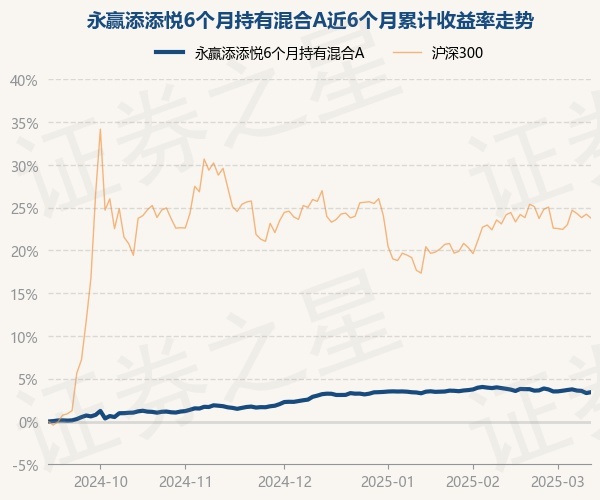 永赢添添悦6个月持有混合A为混合型-偏债基金,根据最新一期基金季报显示,该基金资产配置:无股票类资产,债券占净值比104.89%,现金占净值比0.09%。