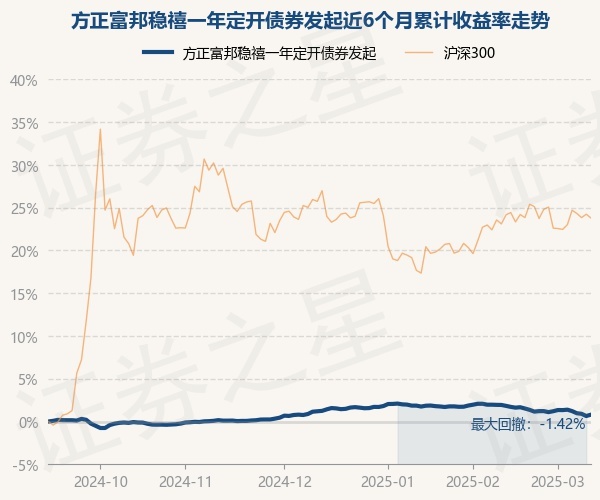证券之星消息,3月12日,方正富邦稳禧一年定开债券发起最新单位净值为1.021元,累计净值为1.0652元,较前一交易日上涨0.16%。历史数据显示该基金近1个月下跌1.12%,近3个月下跌0.44%,近6个月上涨0.8%,近1年上涨3.24%。该基金近6个月的累计收益率走势如下图: