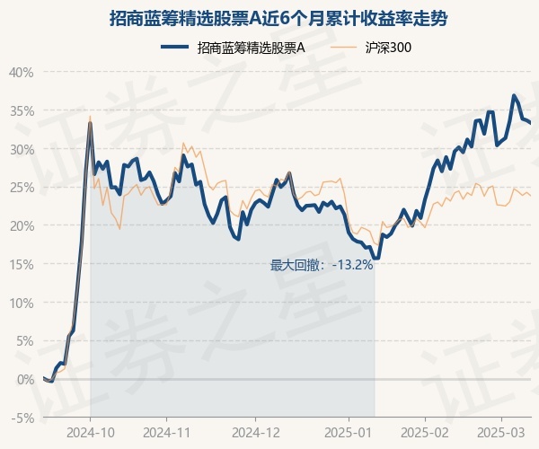 证券之星消息,3月12日,招商蓝筹精选股票A最新单位净值为0.7102元,累计净值为0.7102元,较前一交易日下跌0.25%。历史数据显示该基金近1个月上涨3.45%,近3个月上涨5.17%,近6个月上涨33.27%,近1年上涨21.94%。该基金近6个月的累计收益率走势如下图: