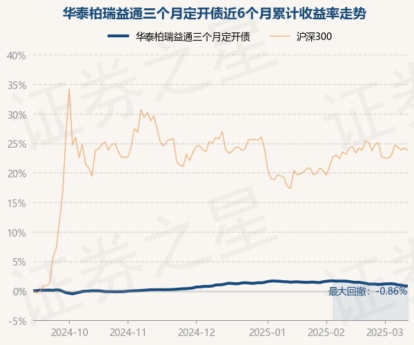 证券之星消息,3月12日,华泰柏瑞益通三个月定开债最新单位净值为1.0523元,累计净值为1.2132元,较前一交易日上涨0.0%。历史数据显示该基金近1个月下跌0.75%,近3个月下跌0.17%,近6个月上涨0.88%,近1年上涨3.44%。该基金近6个月的累计收益率走势如下图: