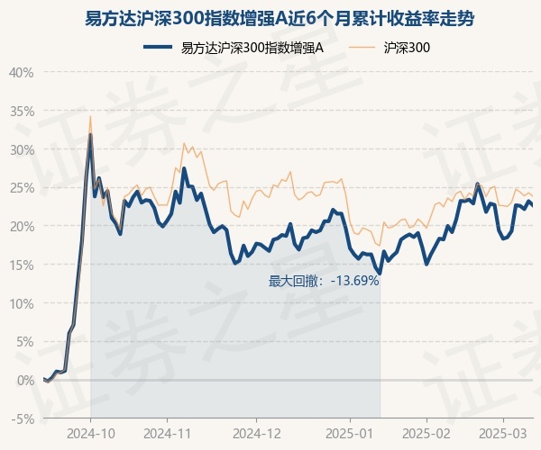证券之星消息,3月12日,易方达沪深300指数增强A最新单位净值为0.8038元,累计净值为0.8038元,较前一交易日下跌0.42%。历史数据显示该基金近1个月上涨2.25%,近3个月上涨2.03%,近6个月上涨22.62%,近1年上涨15.34%。该基金近6个月的累计收益率走势如下图: