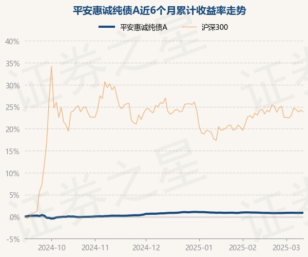 证券之星消息,3月12日,平安惠诚纯债A最新单位净值为1.0402元,累计净值为1.3299元,较前一交易日上涨0.03%。历史数据显示该基金近1个月下跌0.04%,近3个月上涨0.11%,近6个月上涨0.89%,近1年上涨3.48%。该基金近6个月的累计收益率走势如下图: