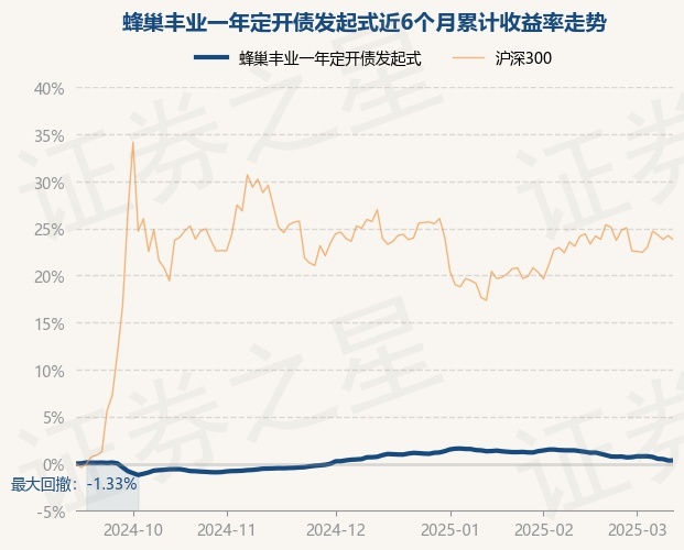 蜂巢丰业一年定开债发起式为债券型-长债基金,根据最新一期基金季报显示,该基金资产配置:无股票类资产,债券占净值比144.89%,现金占净值比0.11%。