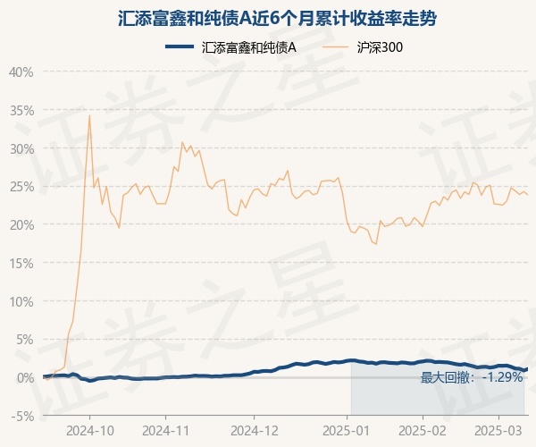 证券之星消息,3月12日,汇添富鑫和纯债A最新单位净值为1.036元,累计净值为1.081元,较前一交易日上涨0.18%。历史数据显示该基金近1个月下跌0.88%,近3个月下跌0.31%,近6个月上涨1.01%,近1年上涨3.22%。该基金近6个月的累计收益率走势如下图: