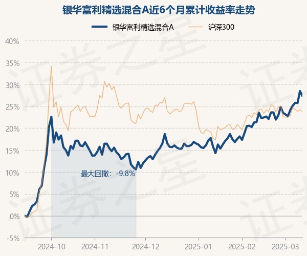 证券之星消息,3月12日,银华富利精选混合A最新单位净值为0.6276元,累计净值为0.6276元,较前一交易日下跌0.85%。历史数据显示该基金近1个月上涨5.0%,近3个月上涨7.34%,近6个月上涨27.38%,近1年上涨3.5%。该基金近6个月的累计收益率走势如下图: