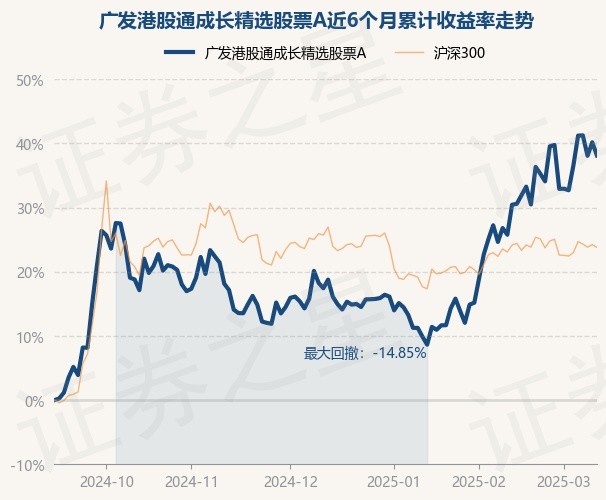 证券之星消息,3月12日,广发港股通成长精选股票A最新单位净值为0.6377元,累计净值为0.6377元,较前一交易日下跌1.47%。历史数据显示该基金近1个月上涨8.92%,近3个月上涨16.28%,近6个月上涨38.12%,近1年上涨25.7%。该基金近6个月的累计收益率走势如下图: