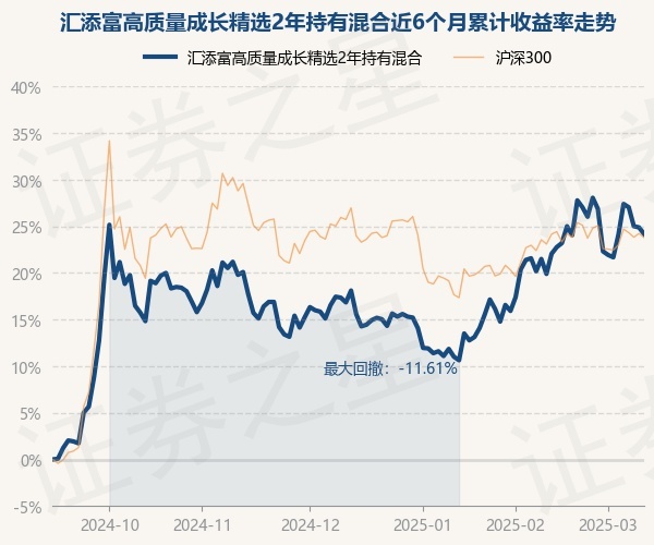 证券之星消息,3月12日,汇添富高质量成长精选2年持有混合最新单位净值为0.4881元,累计净值为0.4881元,较前一交易日下跌0.57%。历史数据显示该基金近1个月上涨2.2%,近3个月上涨5.13%,近6个月上涨24.17%,近1年上涨14.44%。该基金近6个月的累计收益率走势如下图: