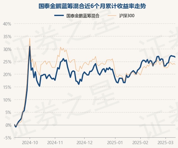证券之星消息,3月12日,国泰金鹏蓝筹混合最新单位净值为1.321元,累计净值为3.445元,较前一交易日下跌0.23%。历史数据显示该基金近1个月上涨0.76%,近3个月上涨2.09%,近6个月上涨26.72%,近1年上涨10.97%。该基金近6个月的累计收益率走势如下图: