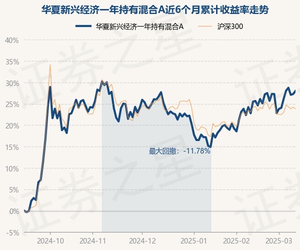 证券之星消息,3月12日,华夏新兴经济一年持有混合A最新单位净值为0.9739元,累计净值为0.9739元,较前一交易日上涨0.56%。历史数据显示该基金近1个月上涨3.03%,近3个月上涨0.22%,近6个月上涨27.99%,近1年上涨20.73%。该基金近6个月的累计收益率走势如下图:
