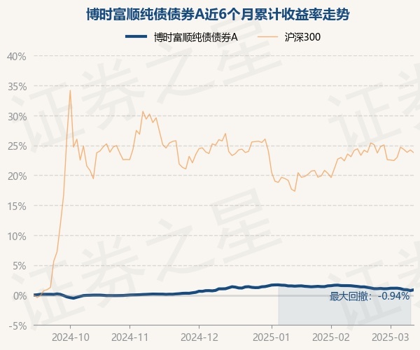 证券之星消息,3月12日,博时富顺纯债债券A最新单位净值为1.0894元,累计净值为1.1957元,较前一交易日上涨0.12%。历史数据显示该基金近1个月下跌0.69%,近3个月下跌0.18%,近6个月上涨0.87%,近1年上涨2.83%。该基金近6个月的累计收益率走势如下图: